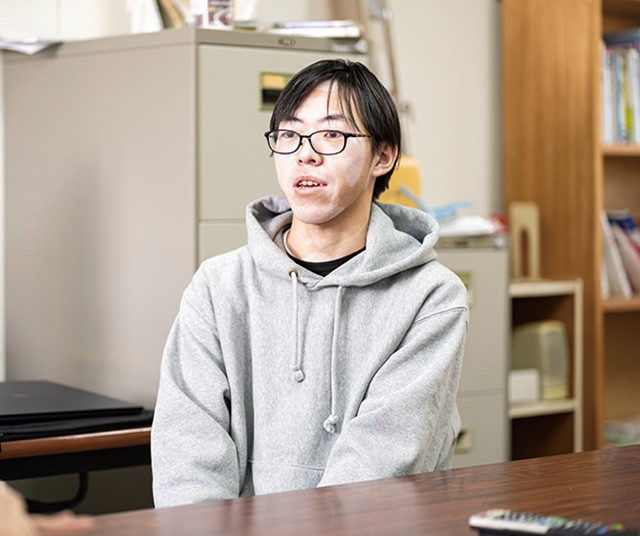 システムエンジニアやウェブデザイナーなど、ITの仕事に興味を持ち業界研究を進めるなかで、「技術」と「マネジメント」は切り離せない関係にあると知り、 本コースを選びました。ここにはIT技術者をはじめ、コンサル業界を目指す学生や家業を継ぐ準備をする学生など、多様な目標を持つ仲間が集まっています。互いに刺激を受けながら学び、将来に向けて成長できる環境です。学校で学び得た力を活かし、理想の未来を実現したいです。