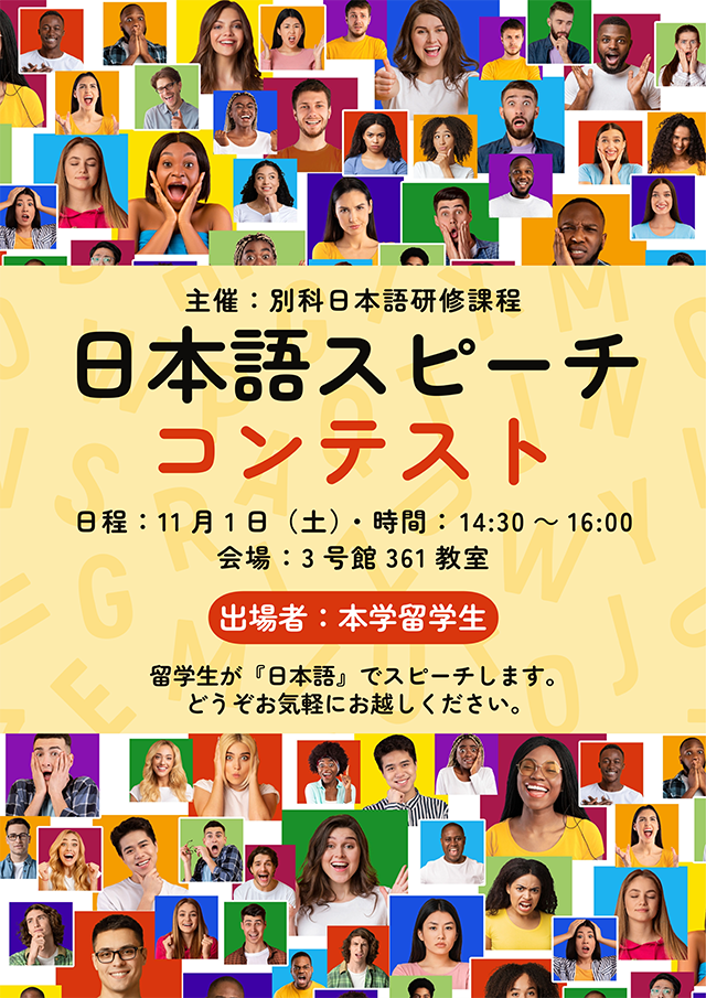 | 14:30~16:00 | 日本語スピーチコンテスト | 3号館361教室 |