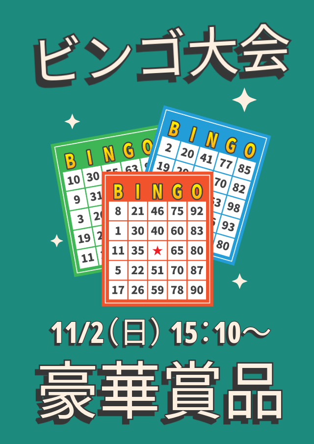 | 15:10~16:10 | ビンゴ大会 | 体育館 |