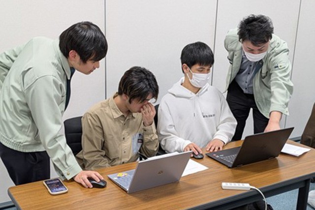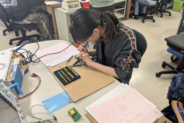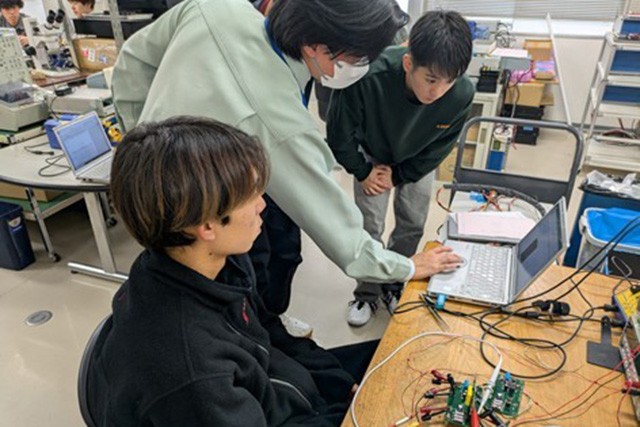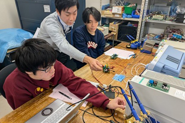 本学とイサハヤ電子株式会社との包括連携協定に基づき、2025年11月11日および18日に、清山浩司教授ならびに電気電子工学コースの学生が同社を訪問し、実践的な教育カリキュラムを実施しました。イサハヤ電子株式会社の現場で行われた今回の教育カリキュラムでは、現場の第一線で活躍する技術者から直接指導を受けることにより、学内での講義では得難い知識や視点を習得し、将来の進路に対する意識を高める貴重な機会となりました。