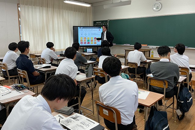 長崎総合科学大学は、地域の教育支援の一環として、佐賀県立伊万里高等学校の2年生を対象に、SDGs(持続可能な開発目標)に関する出前講義を実施しています。本取り組みは、生徒たちが社会課題に主体的に向き合い、未来の地域を担う人材としての視野を広げることを目的としています。講義では、本学の船舶工学コースの古野弘志教授が講師を務め、SDGsの基礎的な考え方から、実際の社会課題にどうアプローチしていくかといった実践的な内容まで、幅広く解説しました。また、生徒自身が身近な問題を見つめ直し、解決策を考え、活発な意見交換が行われました。