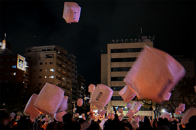 本イベントは、長崎市の冬の風物詩である長崎ランタンフェスティバルの一環として開催され、観光客や市民の皆さまが約300個の大きな白いランタンに願いごとを書き、夜空へと放つ催しです。幻想的な灯りが長崎の夜空を彩り、多くの来場者を魅了しました。