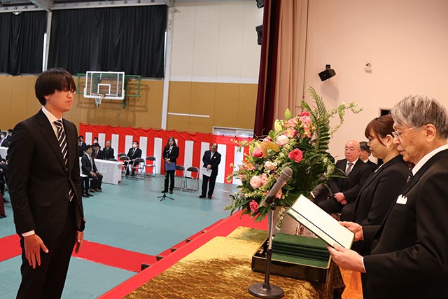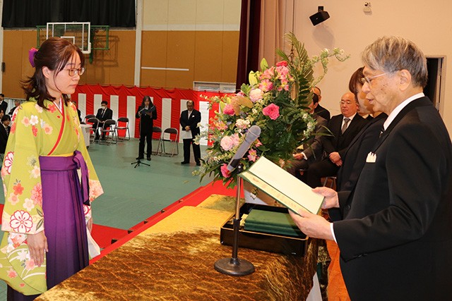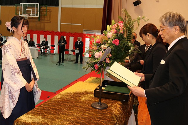 【式辞】本日ここに、晴れて卒業の日を迎えられた学部卒業生一五三名の皆さん、大学院課程を修了された十六名の皆さん、別科日本語研修課程を修了された十九名の皆さん、誠におめでとうございます。この佳き日を迎えるまで、皆さんの成長を温かく見守り、支え続けてこられたご家族やご親族の皆様におかれましても、さぞやお喜びのことと存じます。全文はこちら