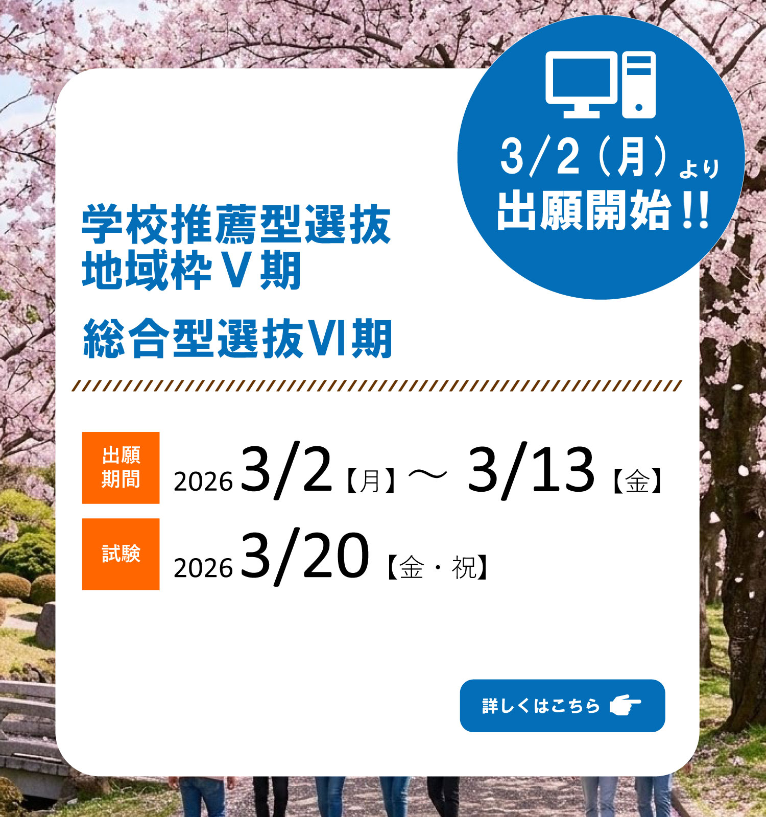 入試情報、学部・学科・大学院案内、卒業生・研究者紹介、キャリア・就職、基礎教育、キャンパス・施設、学生生活、大学案内・学報、入試に関するお問合せ