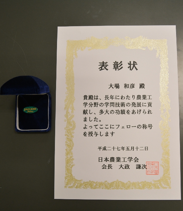 2015年06月23日 トピックス 平成27年5月12日(火)、農業工学関連10学協会の連合組織である日本農業工学会のフェロー授与式が開催され、総合情報学部 総合情報学科 生命環境コース 大場和彦教授がフェロー称号を授与されました。 フェロー称号は、日本農業工学会の関与する分野の学問技術の発展に継続的に顕著な功績のあった者を表彰するもので、大場和彦教授は日本農業気象学会の推薦を受けての受賞となりました。 大場和彦 教授