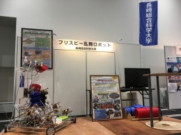 ロボットの展示・デモンストレーションでは、2日間で3000人近く集まり、本学の「フリスビー乱舞ロボット」にも多数の見学者が訪れました。デモンストレーションは学生が担当し、フリスビーを飛ばすと集まった観客から「おぉ~っ」「すごい」という歓声があがっていました。