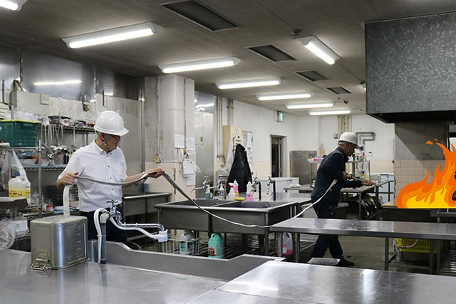 - 出火箇所へ駆けつけ、初期消火・延焼防止
